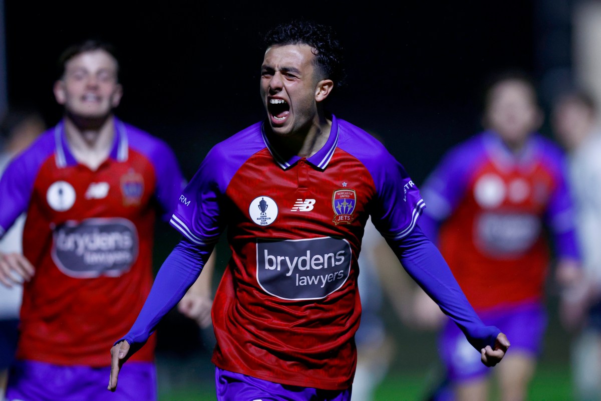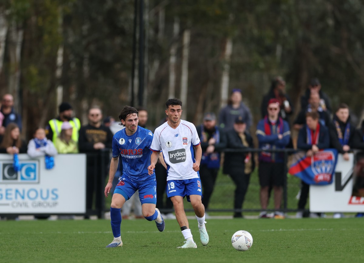 MELBOURNE, AUSTRALIA – AUGUST 31: Alex Badolato of the Jets controls the ball during the Australia Cup 2025 Semi Final match between Avondale FC and Newcastle Jets FC at Avenger Park, on August 31, 2025 in Melbourne, Australia. (Photo by Robert Cianflone/Getty Images)